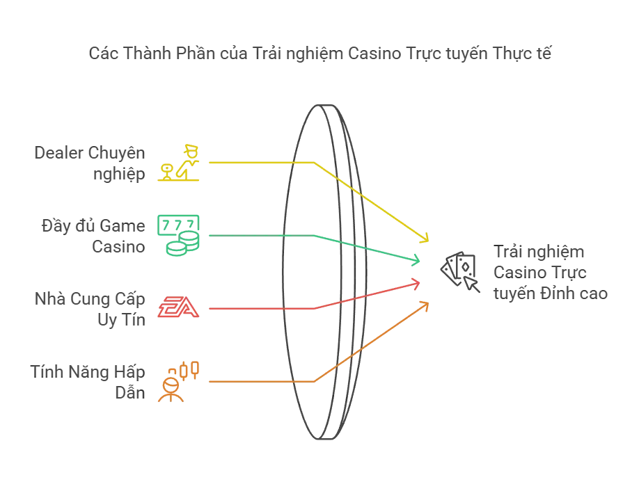 Sống động như casino thật: Dealer chuyên nghiệp, giao diện đẹp, âm thanh cuốn hút, trải nghiệm chân thực.